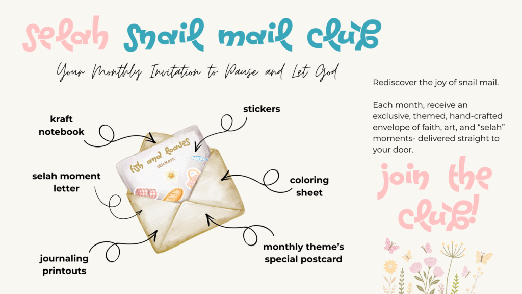 Open your mail, light a candle, and enjoy your new notebook, stickers, and art. It's time for your well-deserved Selah moment.